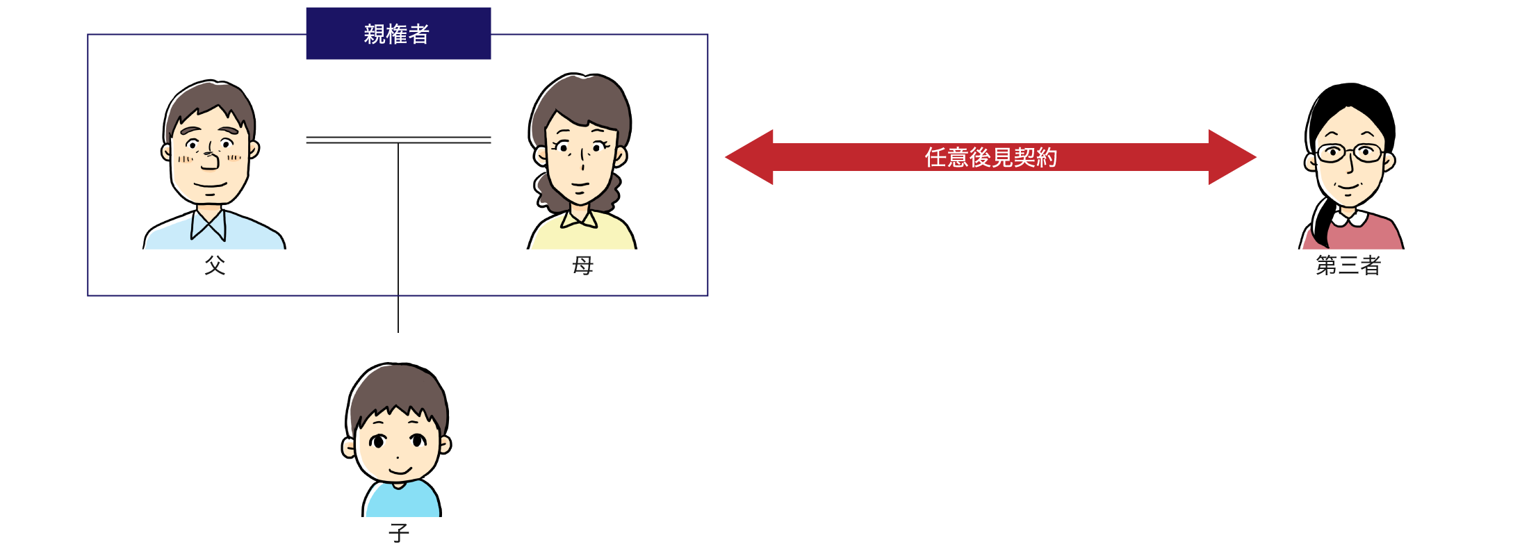 親が任意後見候補者となる場合は、親と本人が任意後見契約を締結する必要があるため少し工夫が必要になります。
